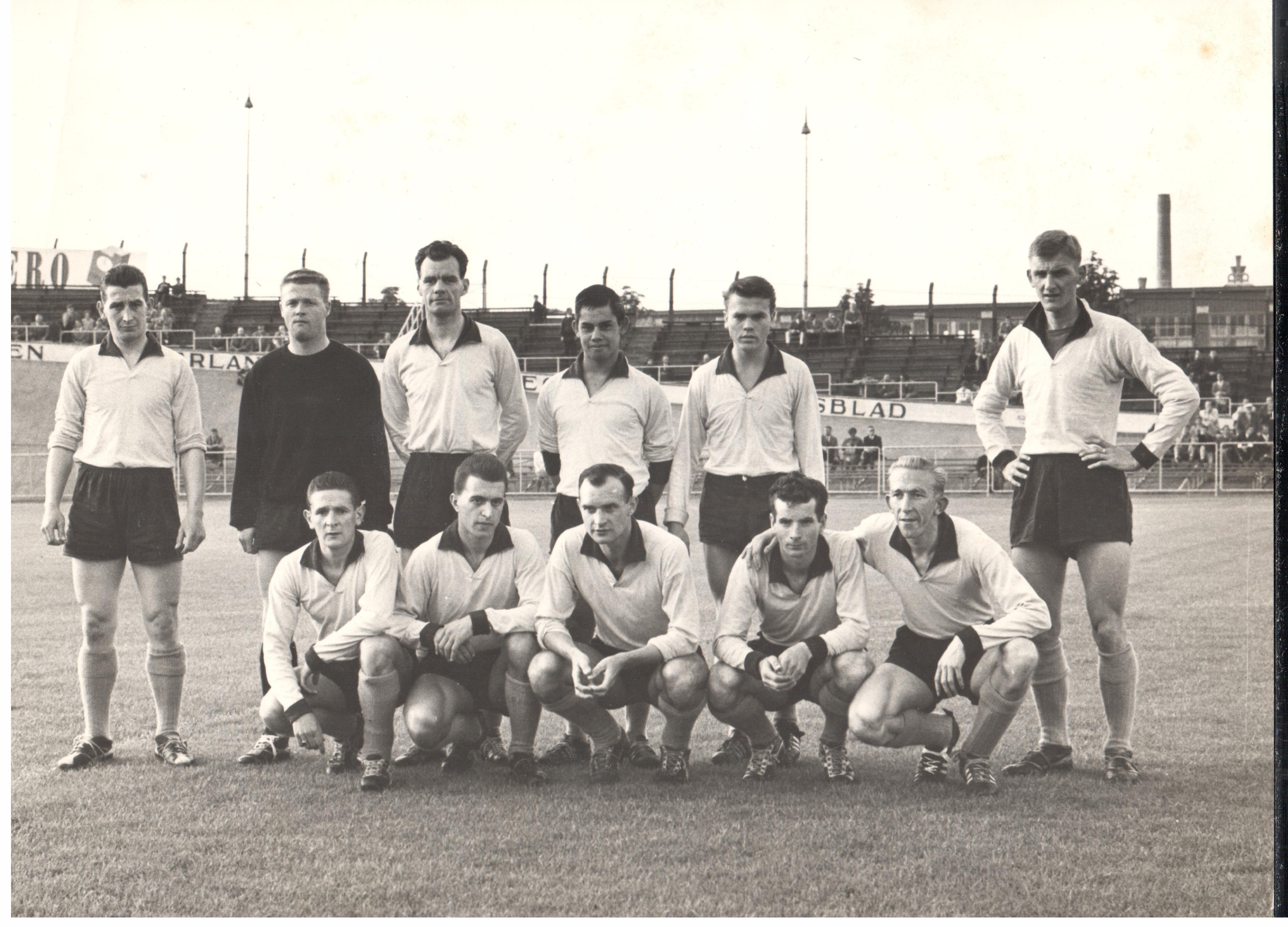 Op de foto: Willy van den Hurk tweede van rechts knielend in het elftal van Wilhelmina, dat in 1961 naar de eerste divisie promoveerde.