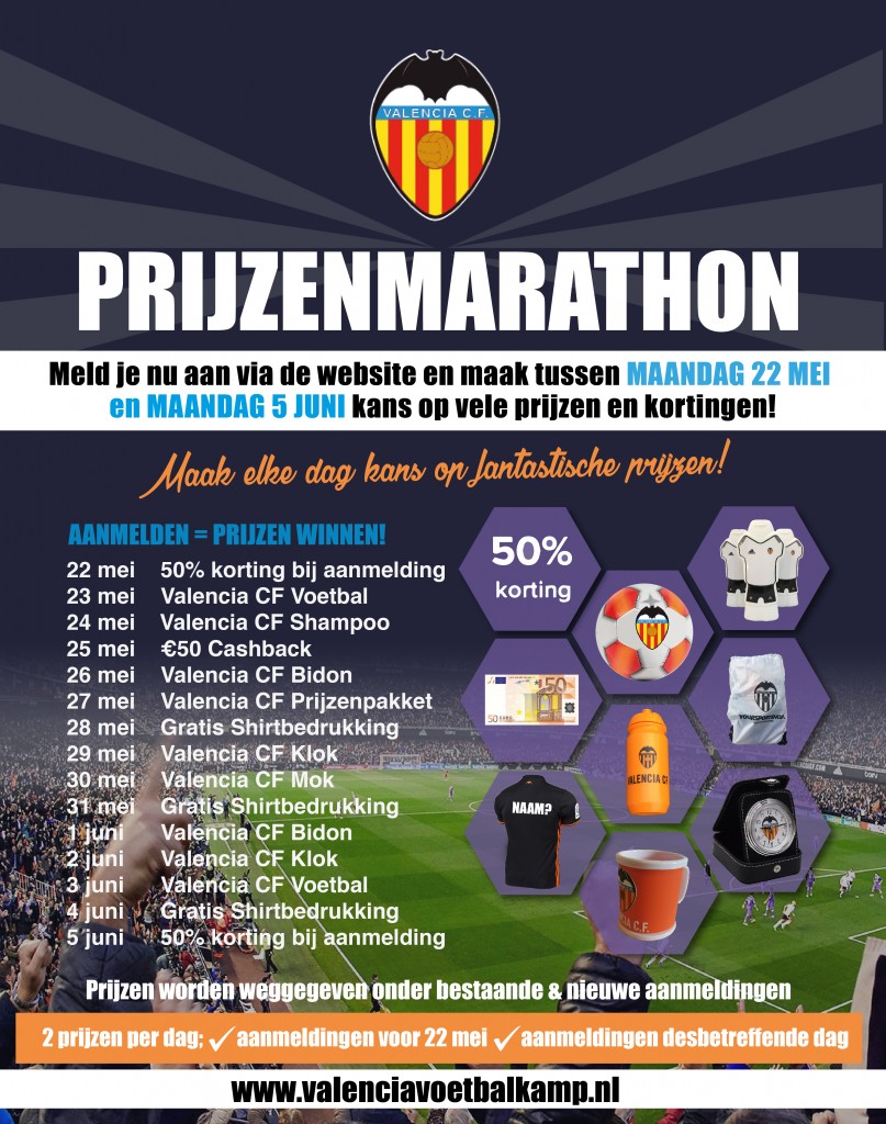 Het Valencia Voetbalkamp is van 17 t/m 19 juli bij RKVV Wilhelmina. Meld je nu aan op www.valenciavoetbalkamp.nl en maak kans op prijzen en kortingen. De prijzen worden ook weggegeven onder bestaande aanmeldingen