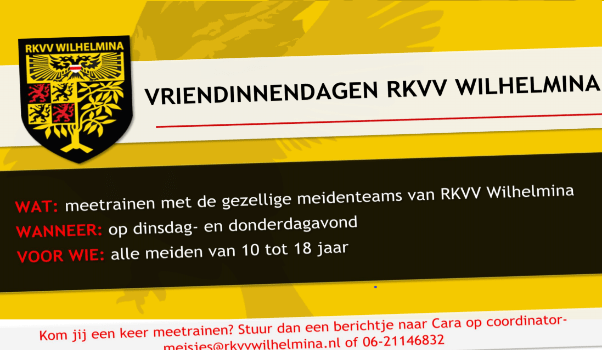 Wil je meetrainen of meer informatie? Stuur dan een mailtje naar coordinator-meisjes@Rkvvwilhelmina.nl of stuur een berichtje naar 06-21146832